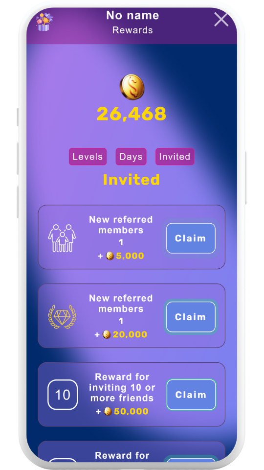 In the “Invited” section, you’ll find rewards for inviting friends. Just click “Claim” to collect your points. The section will soon be expanded with a “Special” category—stay tuned for more details.